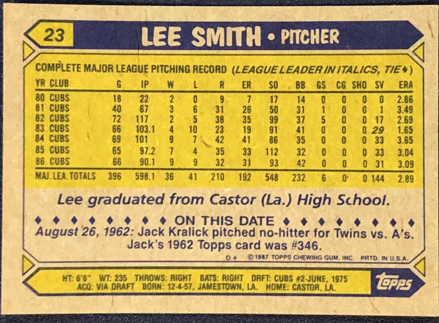 Lot 674 1987 TOPPS LEE SMITH (HOF)