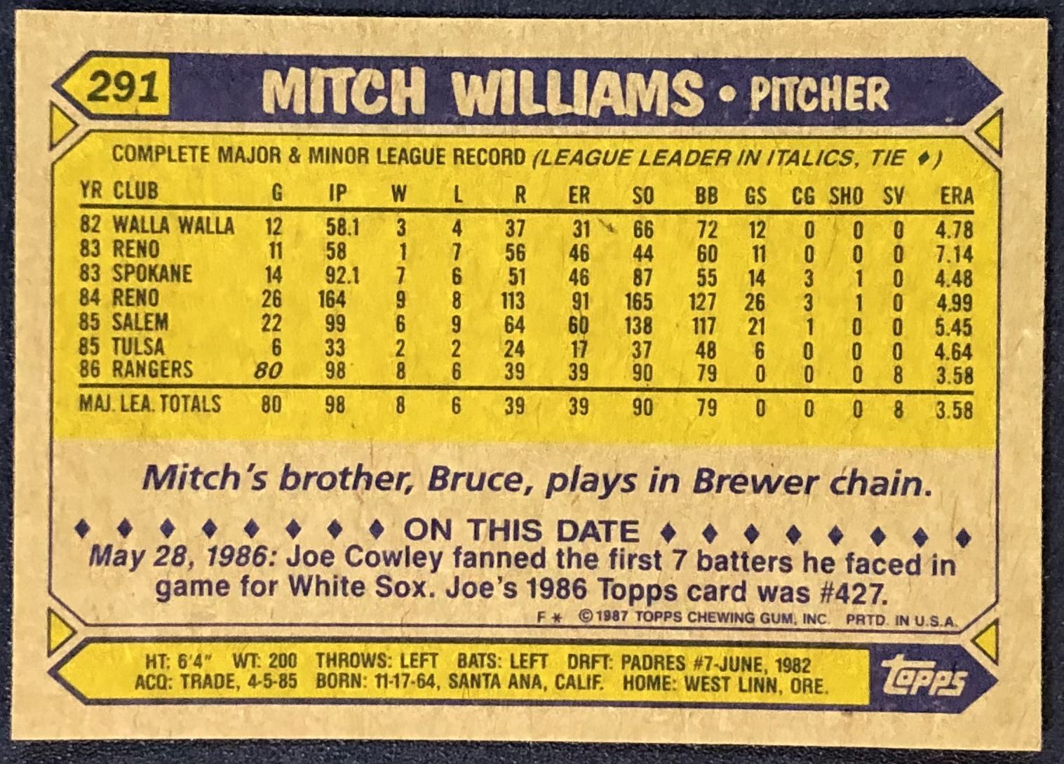 Lot 676 1987 TOPPS MITCH WILLIAMS ROOKIE CARD