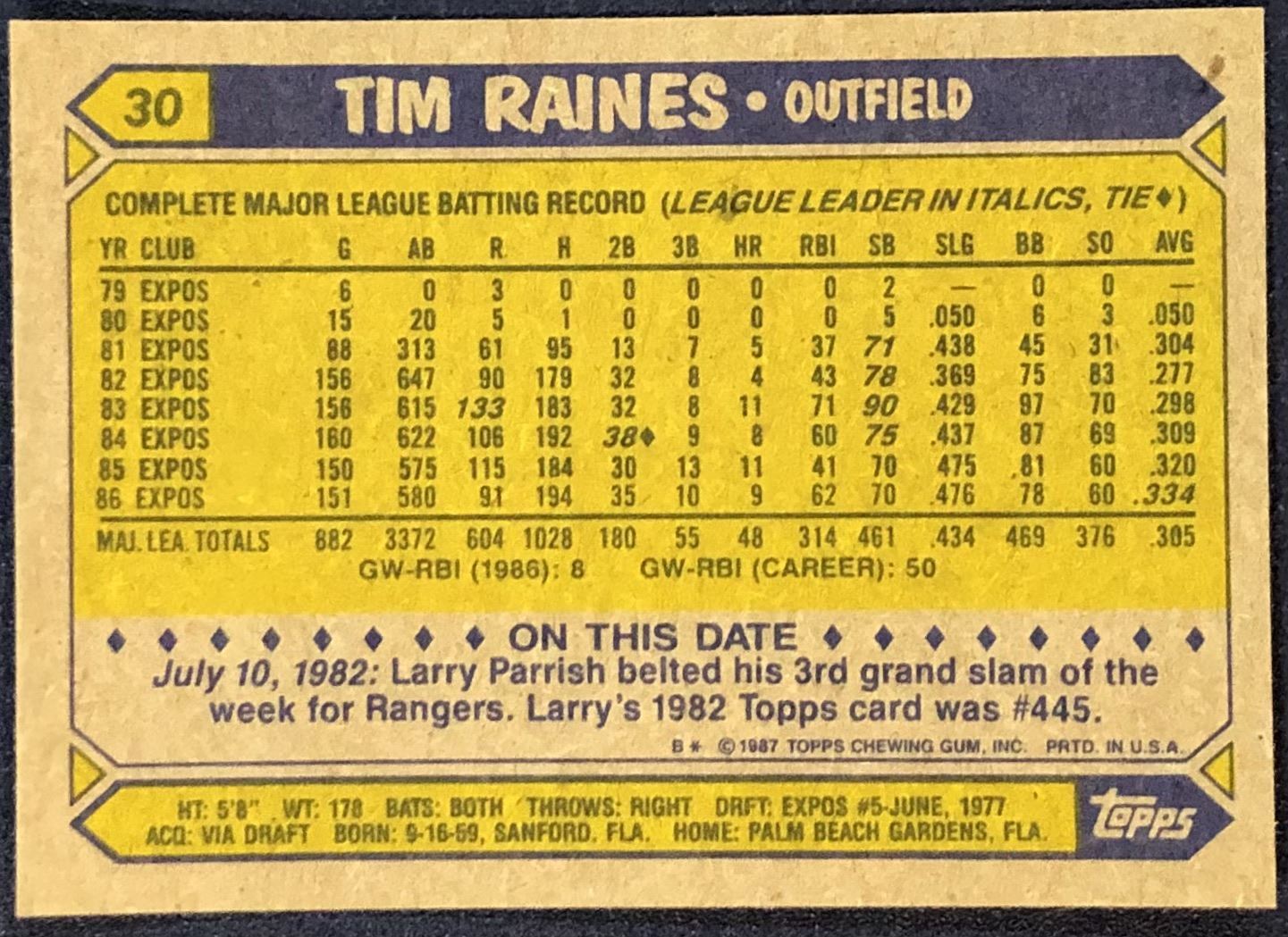 Lot 684 1987 TOPPS TIM RAINES (HOF)