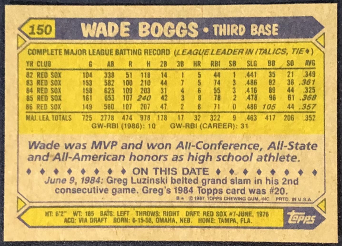 Lot 686 1987 TOPPS WADE BOGGS (HOF)