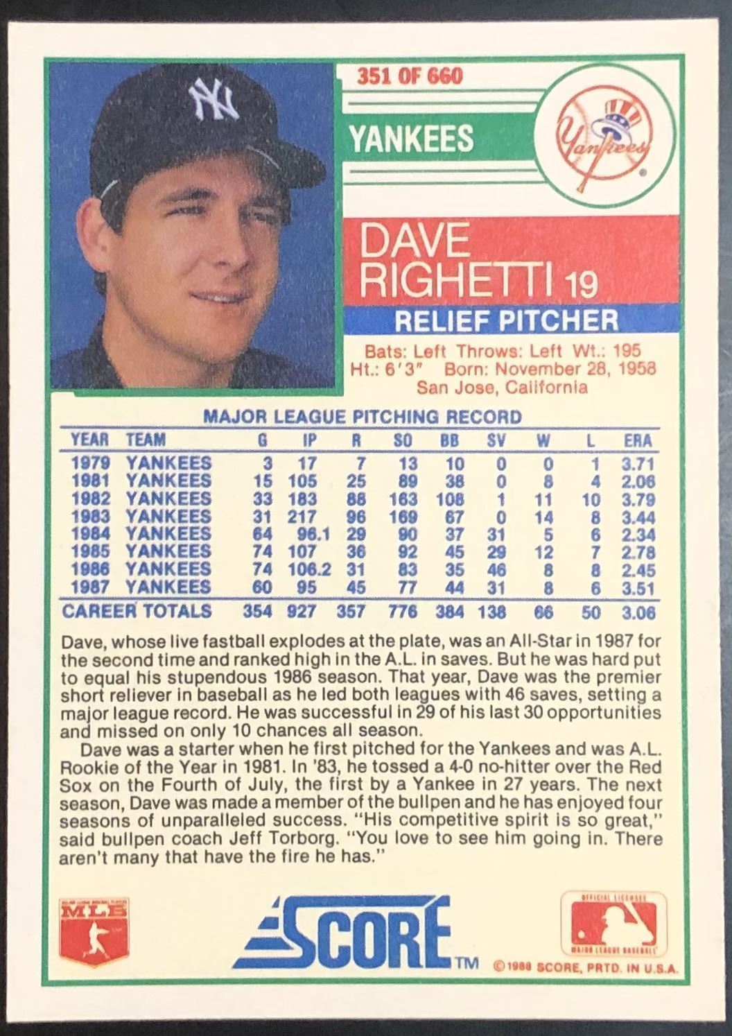 Lot 692 1988 SCORE DAVE RIGHETTI
