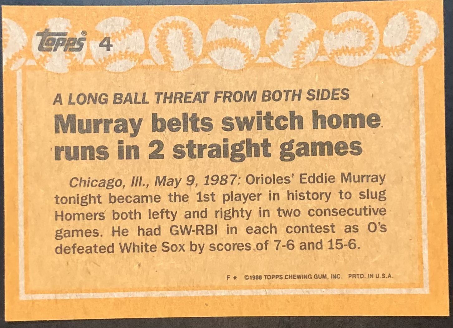 Lot 704 1988 TOPPS EDDIE MURRAY (HOF)