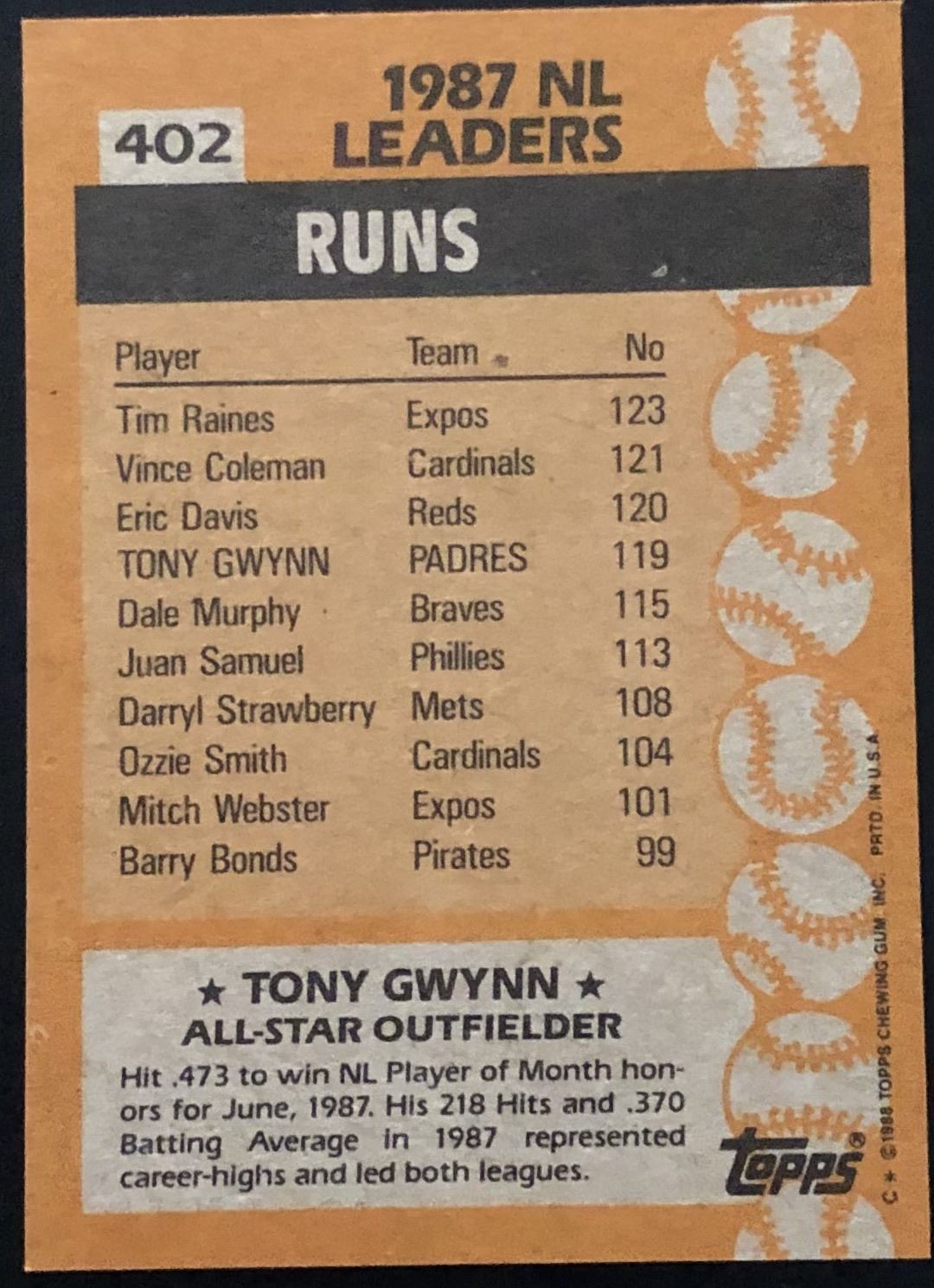 Lot 708 1988 TOPPS TONY GWYNN (HOF)