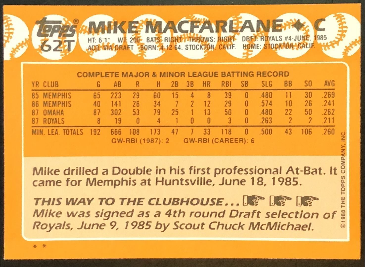 Lot 709 1988 TOPPS TRADED MIKE MacFARLANE ROOKIE CARD