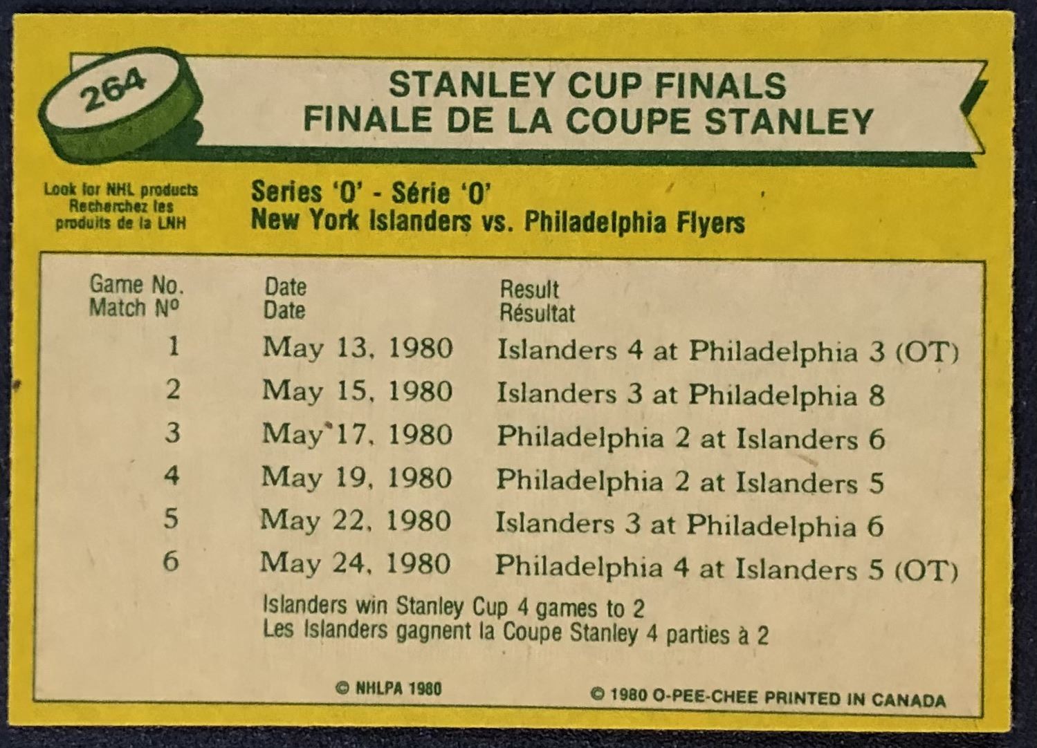 Card #264 OPC, NHL, hockey, vintage