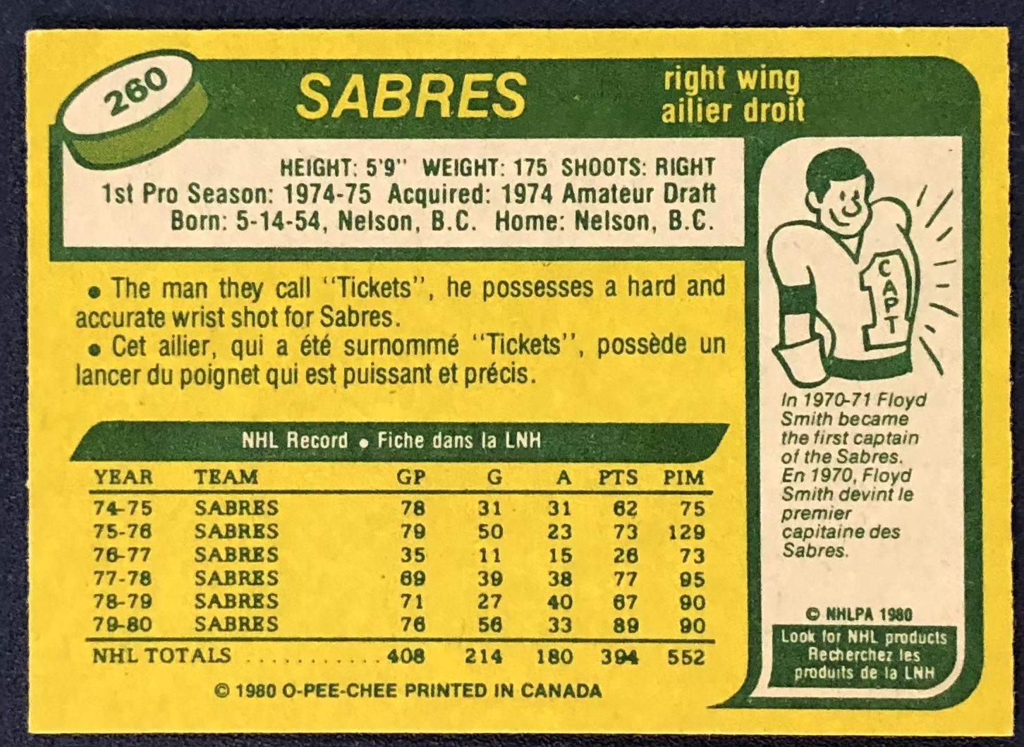 Card #260 OPC, NHL, hockey, vintage