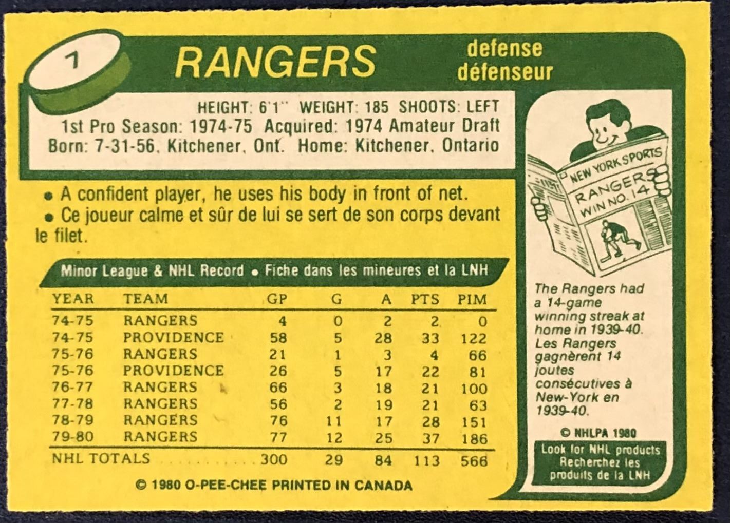 Card #7 OPC, NHL, hockey, vintage