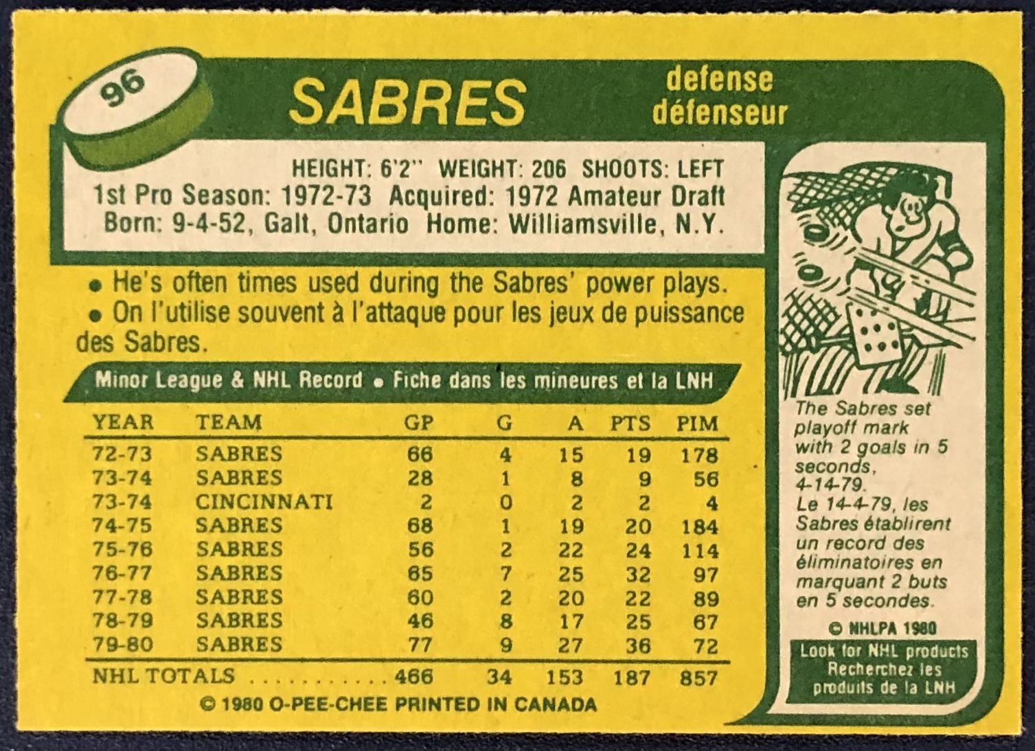 Card #96 OPC, NHL, hockey, vintage
