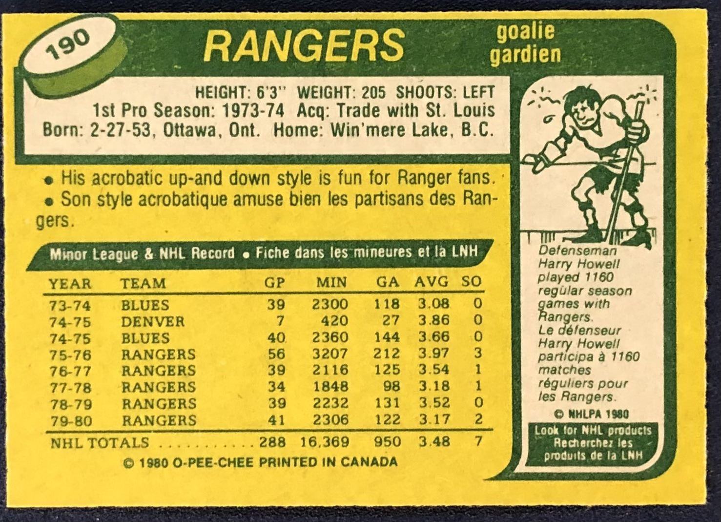 Card #190 OPC, NHL, hockey, vintage