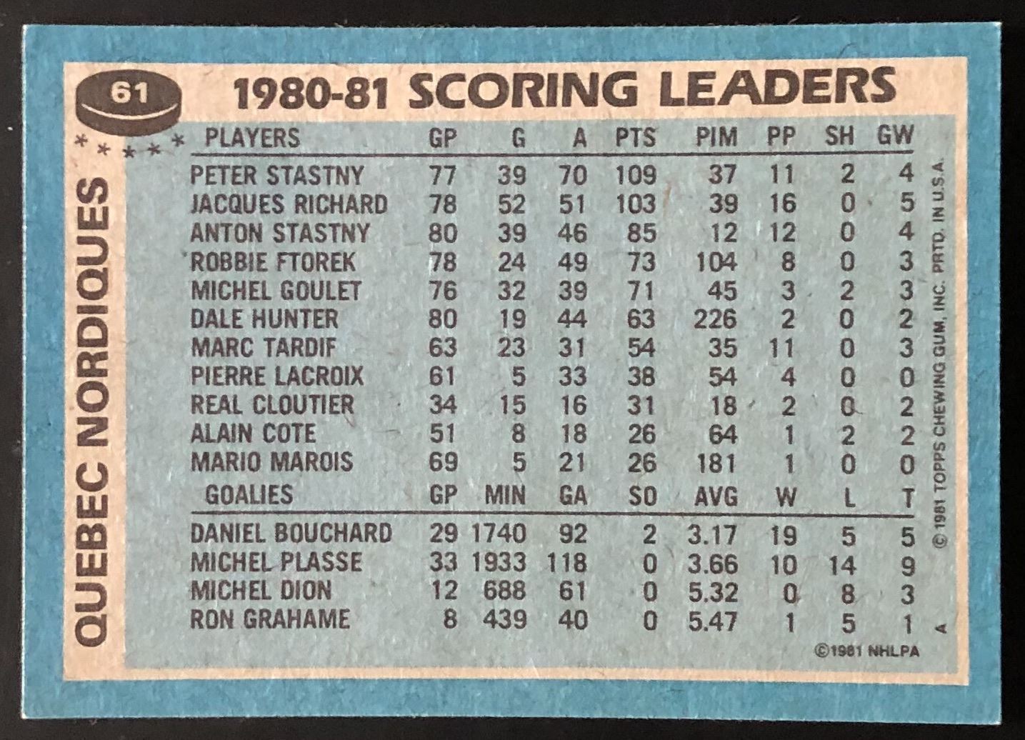 Lot 738 1981-82 TOPPS PETER STASTNY (HOF)