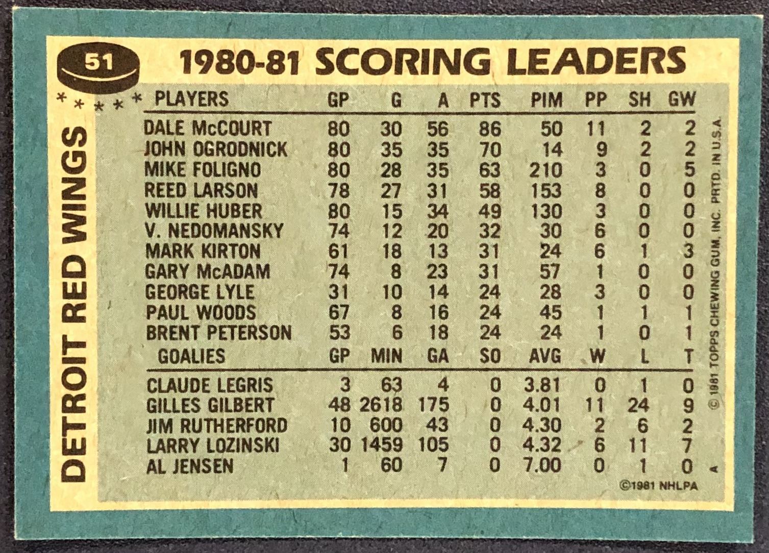 Lot 744 1981-82 TOPPS DALE McCOURT