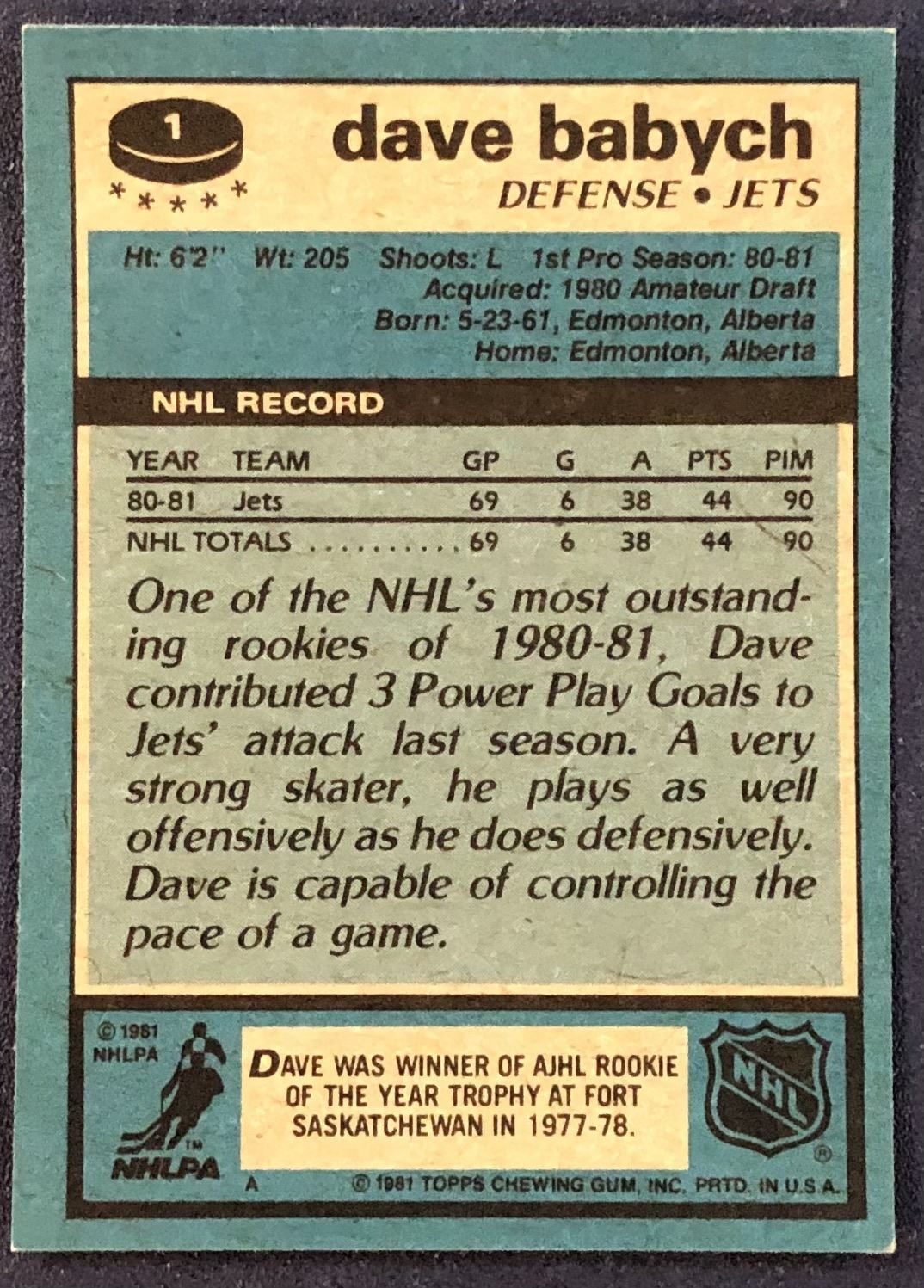 Lot 745 1981-82 TOPPS DAVE BABYCH ROOKIE CARD