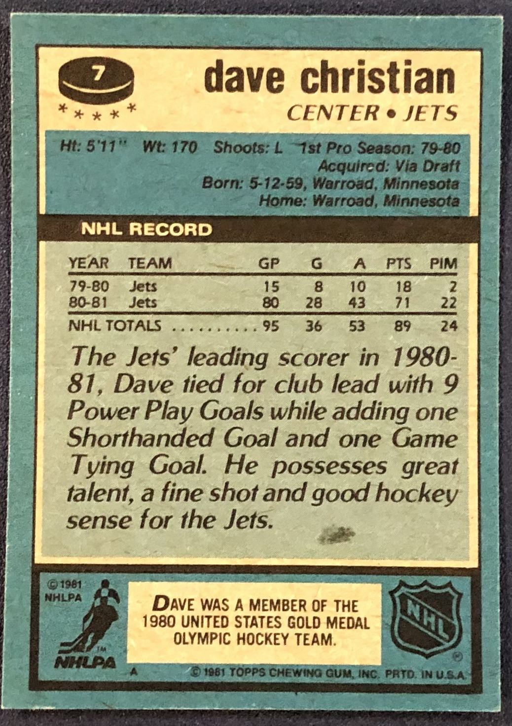 Lot 746 1981-82 TOPPS DAVE CHRISTIAN ROOKIE CARD