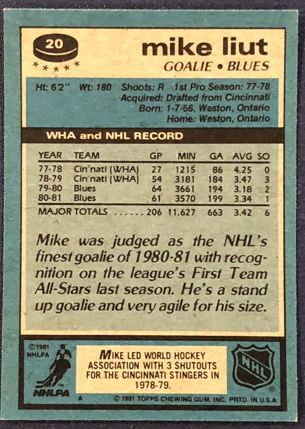 Lot 752 1981-82 TOPPS MIKE LIUT (HOF)