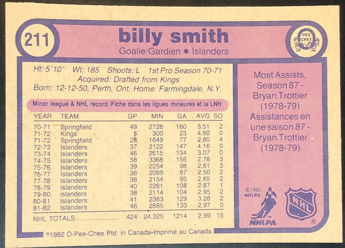 Lot 758 1982-83 O-PEE-CHEE BILLY SMITH (HOF)