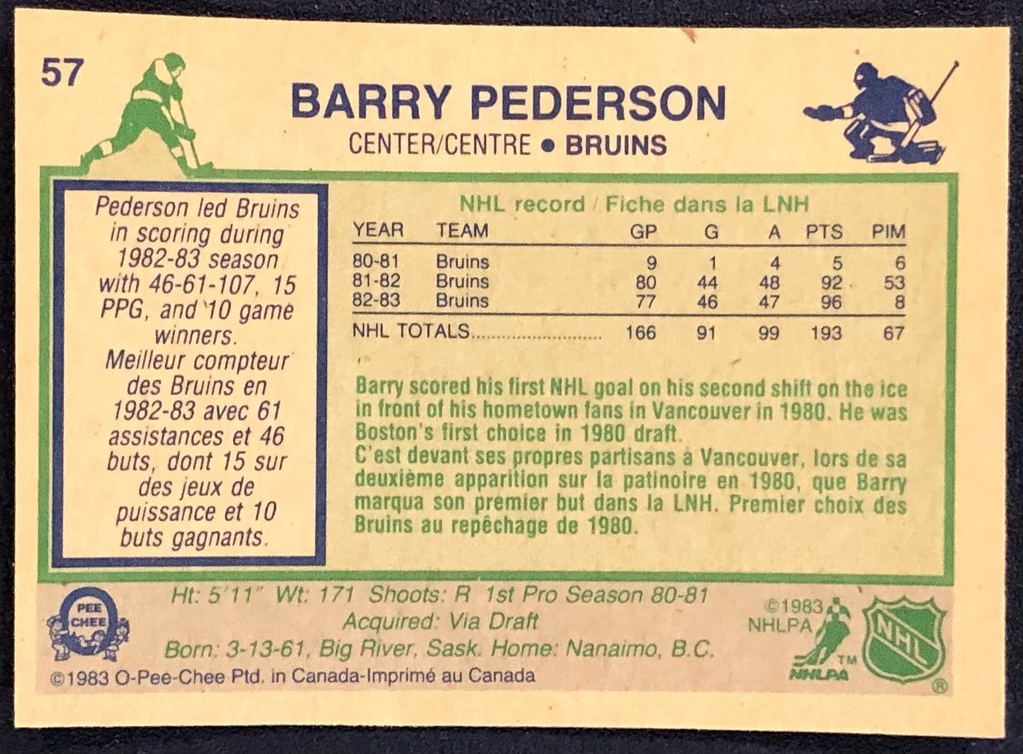 Lot 761 1983-83 O-PEE-CHEE BARRY PEDERSON