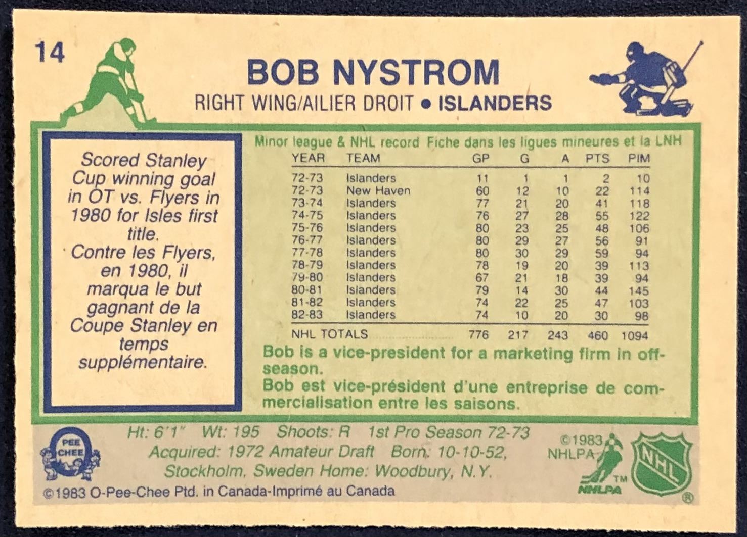 Lot 762 1983-83 O-PEE-CHEE BOB NYSTROM