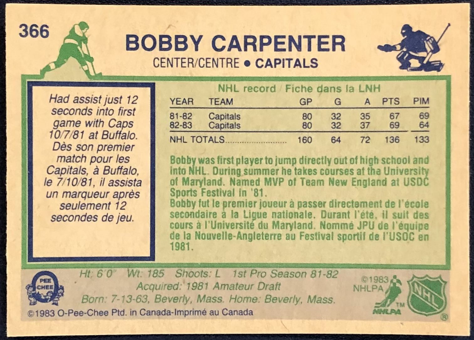 Lot 763 1983-83 O-PEE-CHEE BOBBY CARPENTER