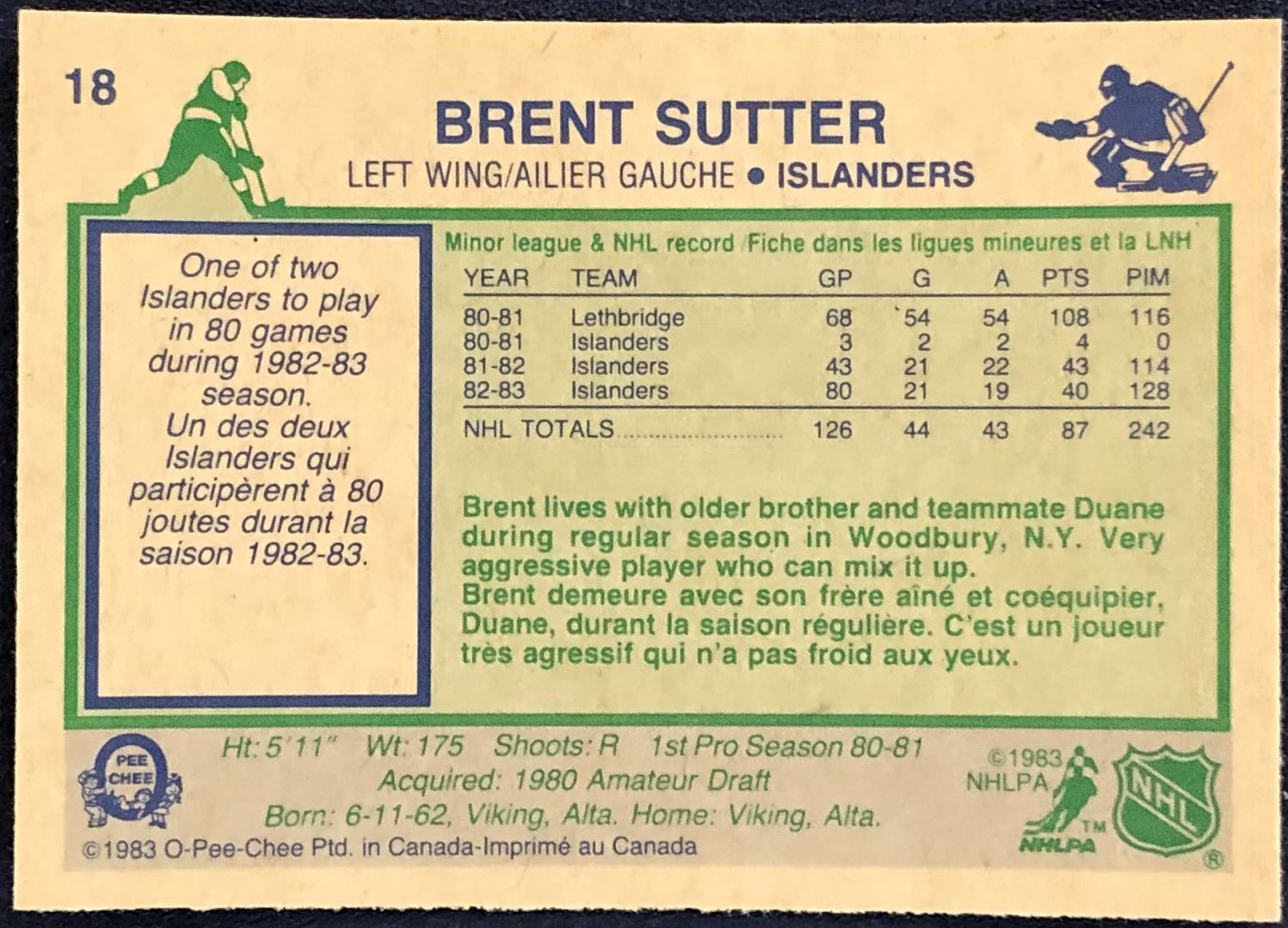 Lot 764 1983-83 O-PEE-CHEE BRENT SUTTER