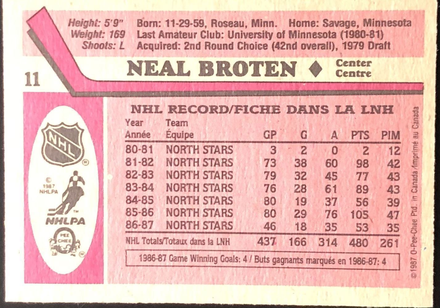Lot 792 1987-88 O-PEE-CHEE NEAL BROTEN