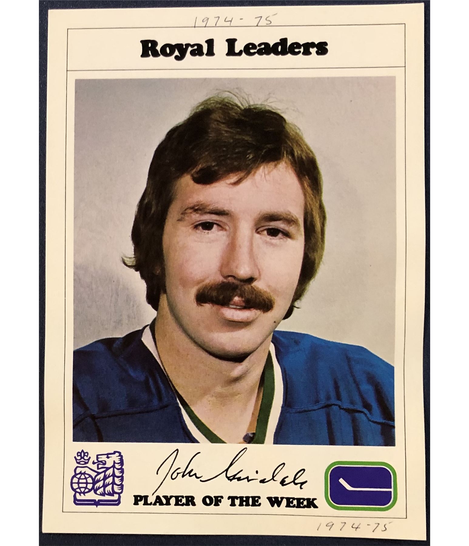 Lot 838 1974-75 RBC VANCOUVER CANUCKS - JOHN GRISDALE
