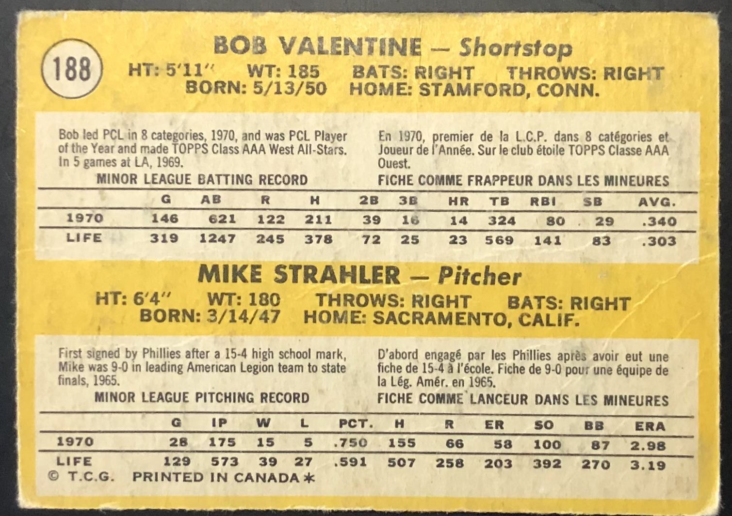 Lot 864 1971 O-PEE-CHEE BOBBY VALENTINE ROOKIE CARD