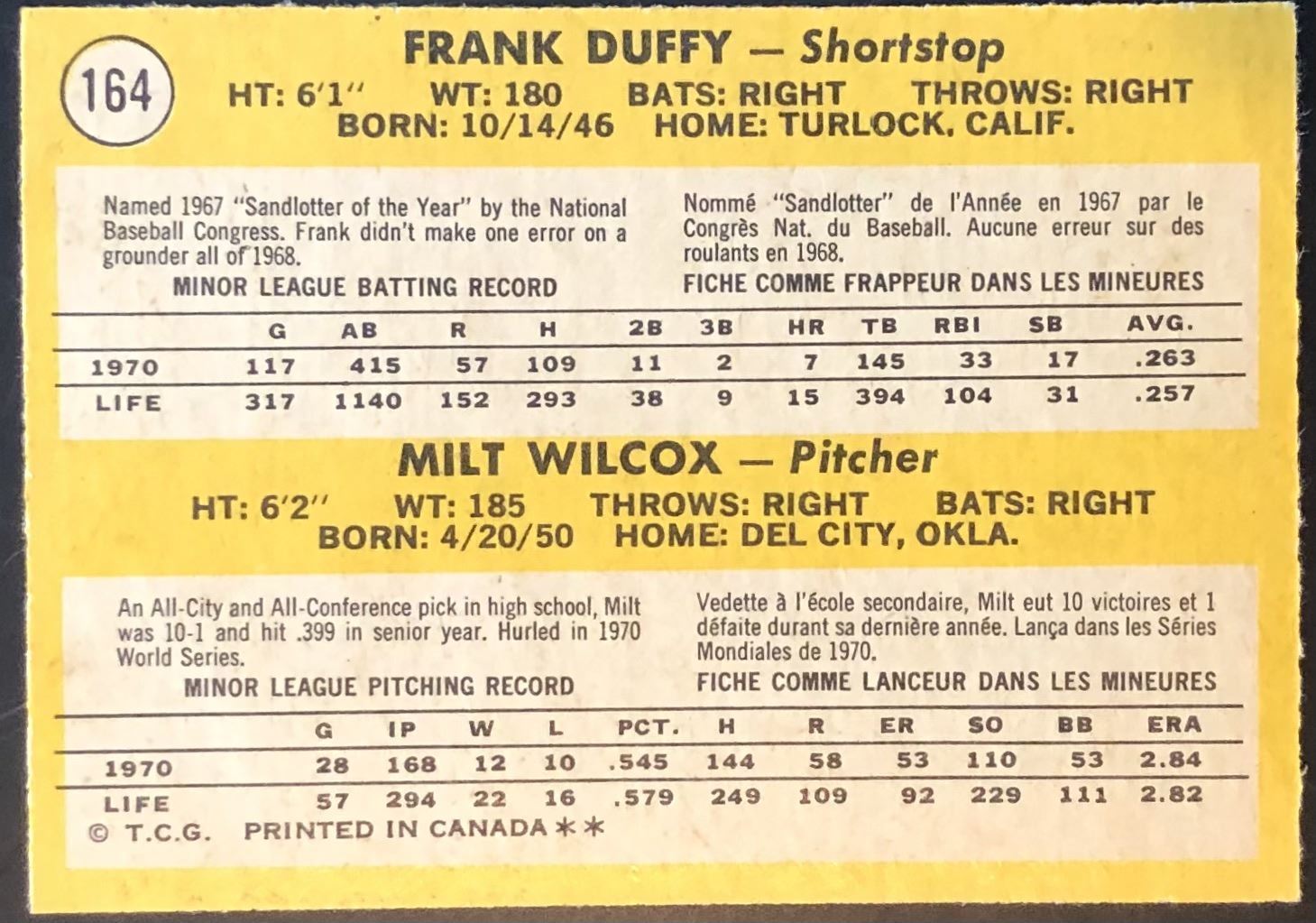 Lot 866 1971 O-PEE-CHEE MILT WILCOX ROOKIE CARD