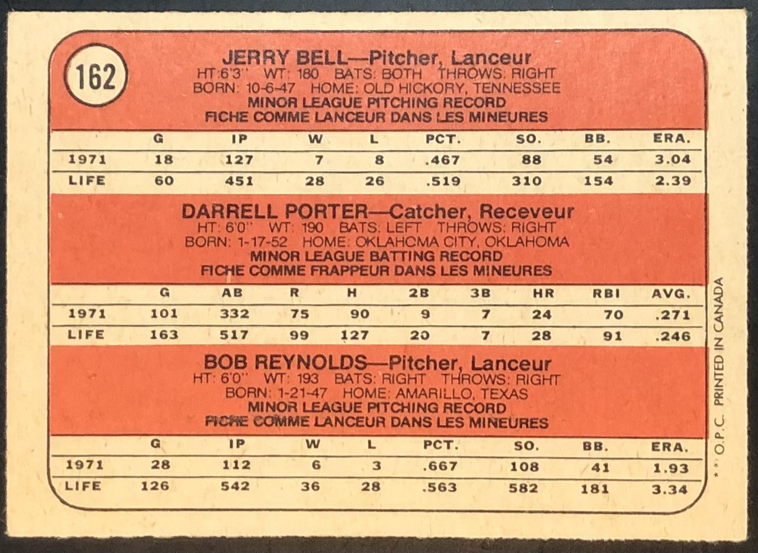 Lot 868 1972 O-PEE-CHEE DARRELL PORTER ROOKIE CARD