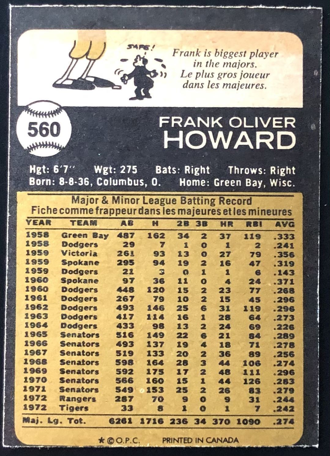 Lot 873 1973 O-PEE-CHEE HIGH NUMBER FRANK HOWARD
