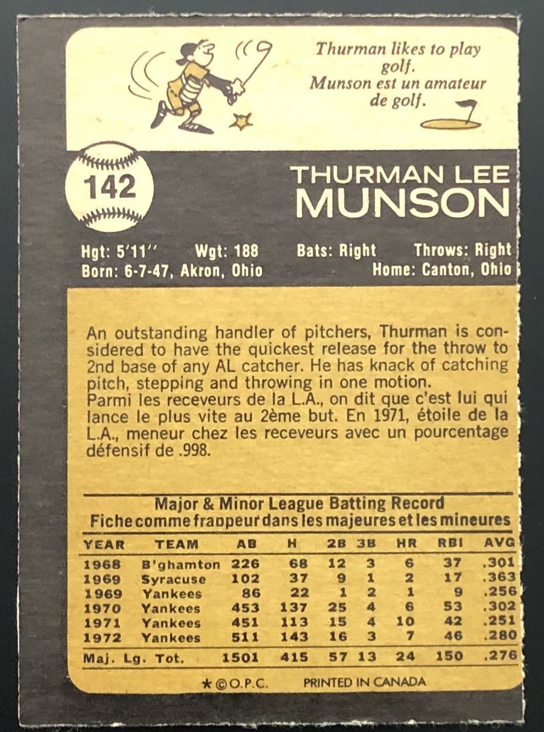 Lot 877 1973 O-PEE-CHEE THURMAN MUNSON