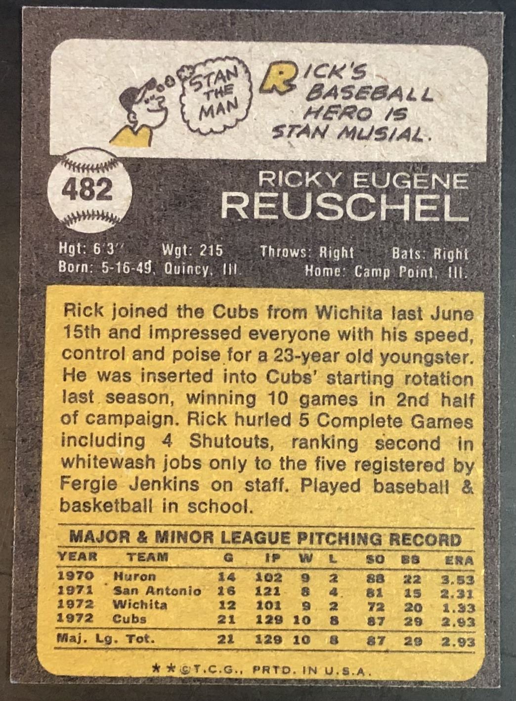 Lot 879 1973 TOPPS RICK REUSCHEL ROOKIE CARD