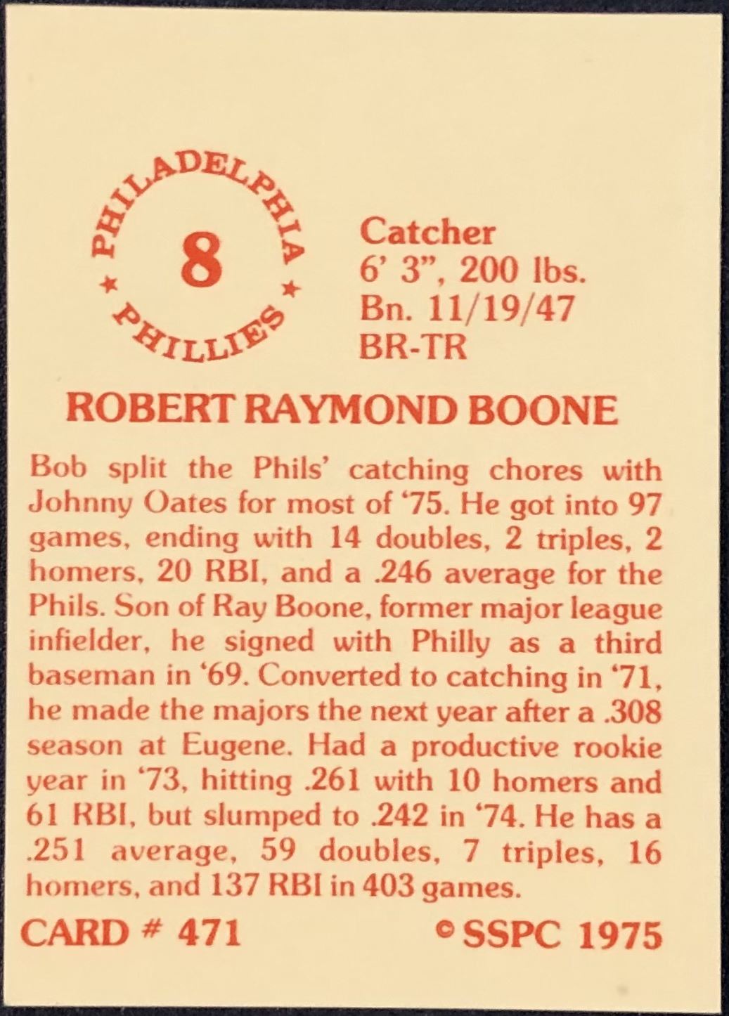 Lot 885 1975 SSPC BASEBALL BOB BOONE