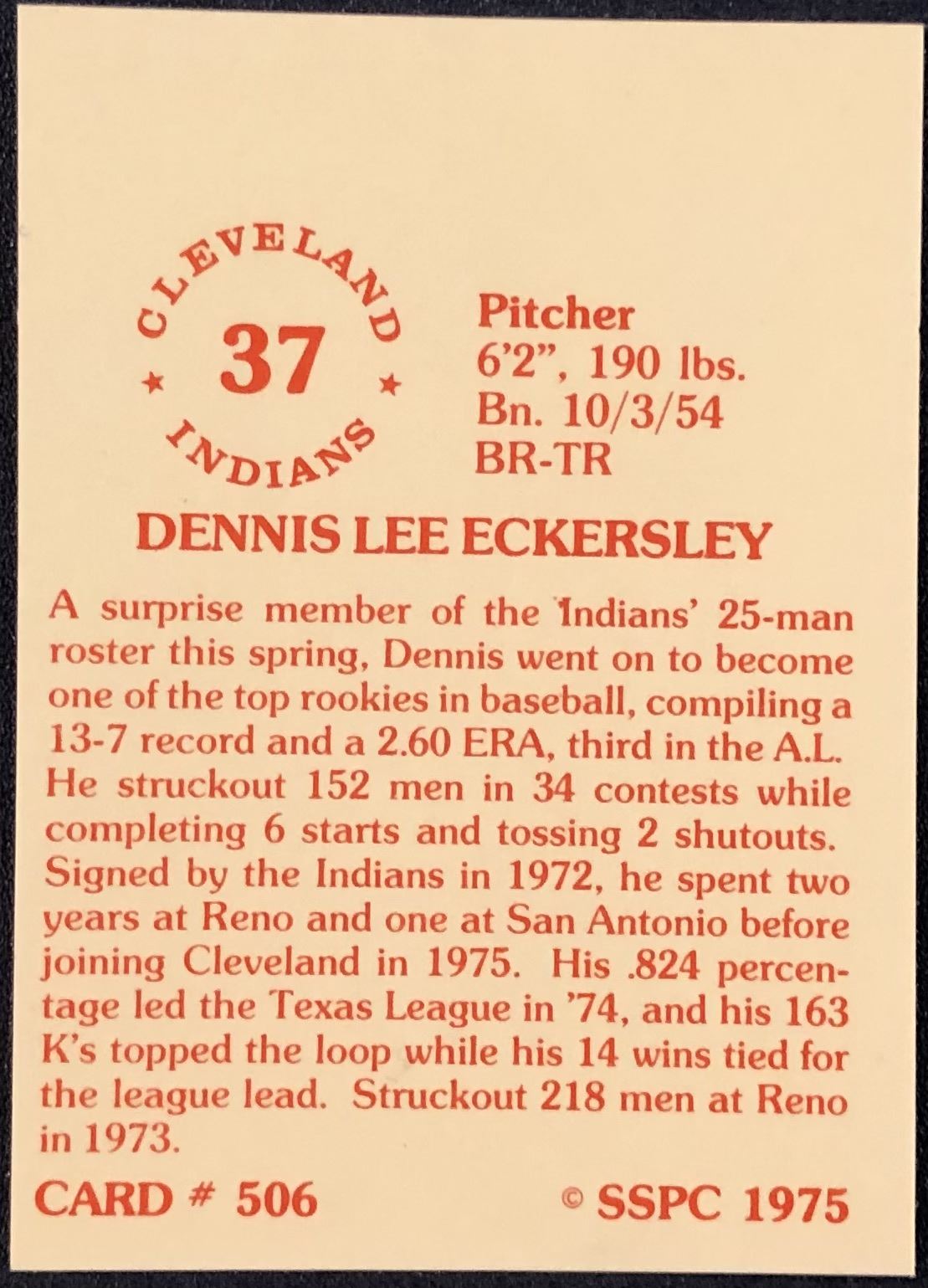 Lot 892 1975 SSPC BASEBALL DENNIS ECKERSLEY (HOF)