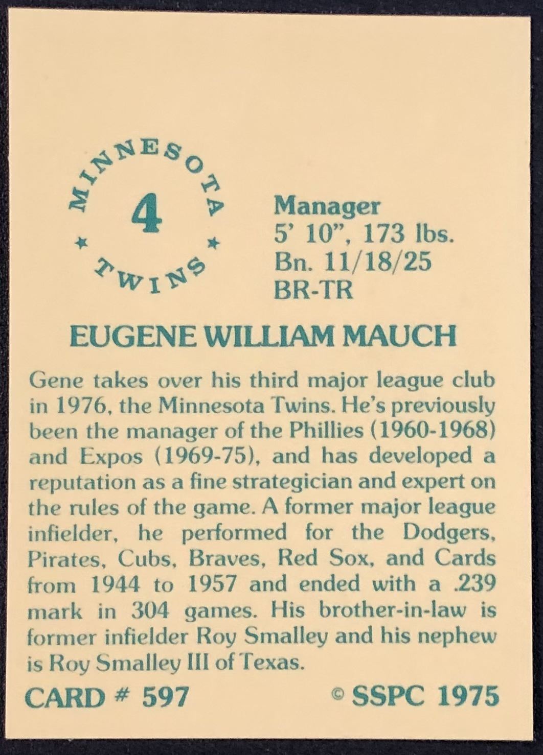 Lot 897 1975 SSPC BASEBALL GENE MAUCH