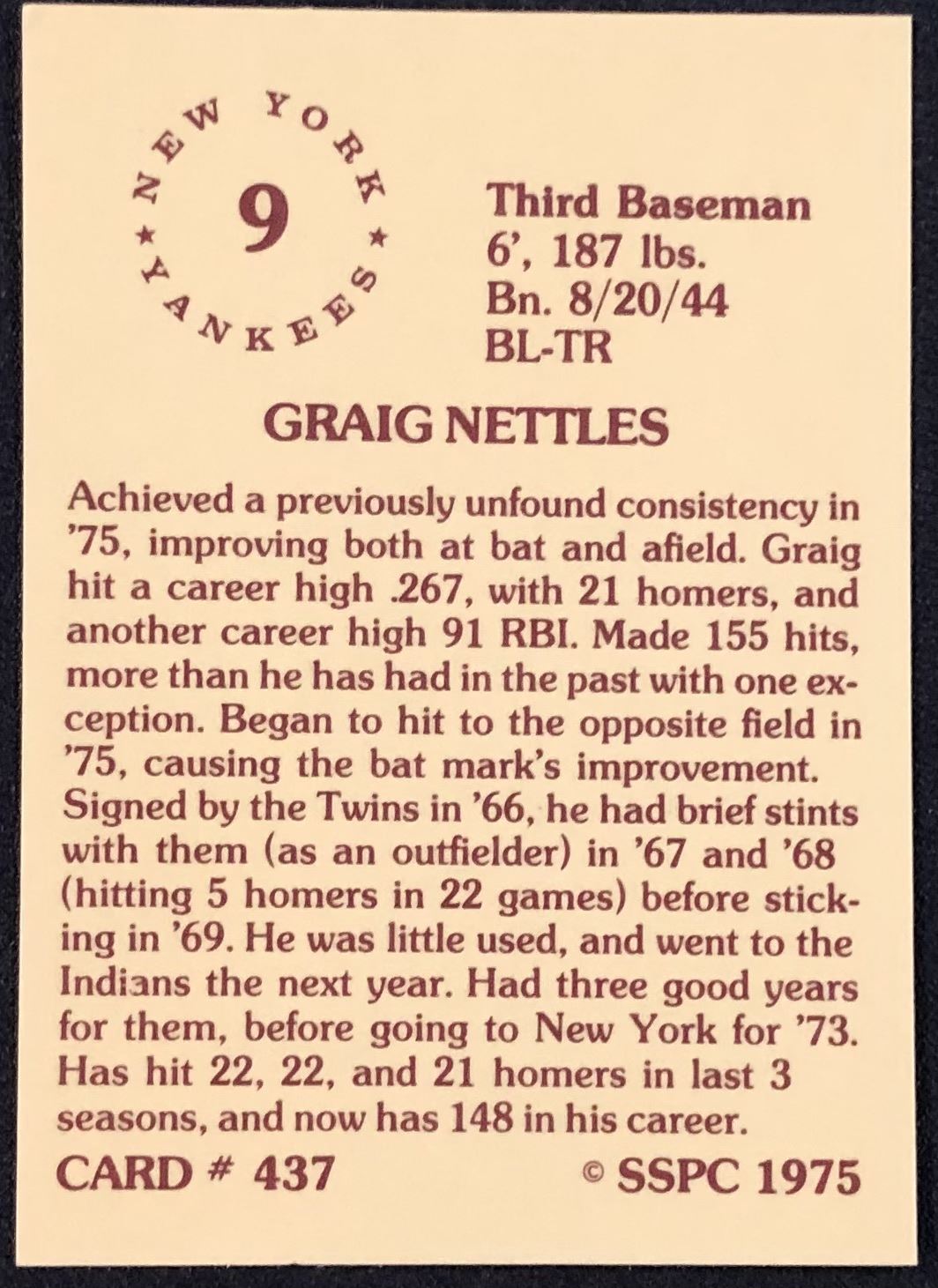 Lot 898 1975 SSPC BASEBALL GRAIG NETTLES