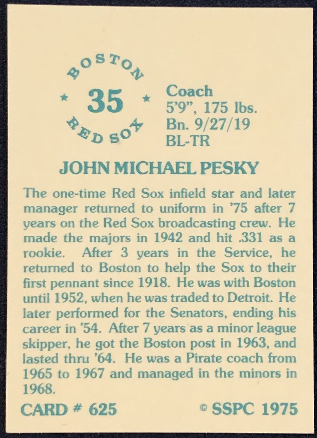 Lot 904 1975 SSPC BASEBALL JOHNNY PESKY