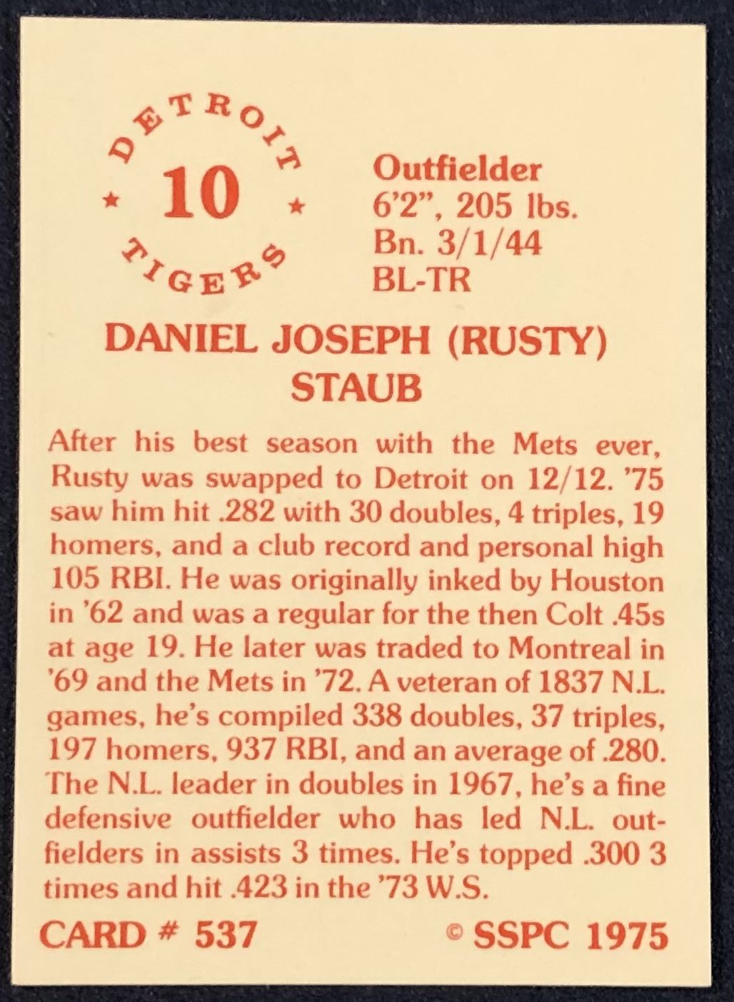 Lot 915 1975 SSPC BASEBALL RUSTY STAUB