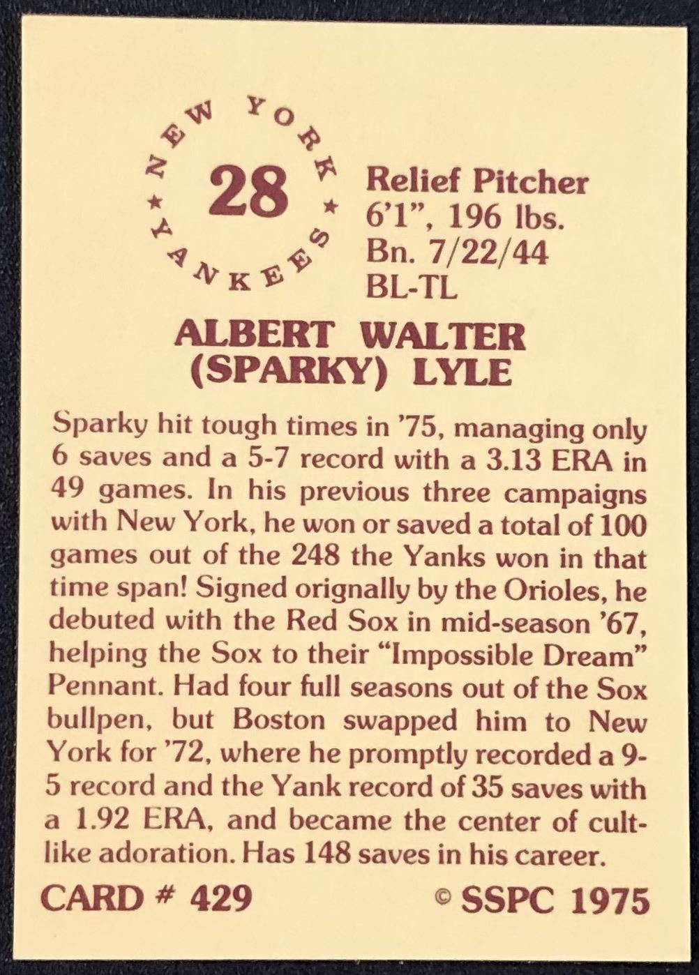 Lot 916 1975 SSPC BASEBALL SPARKY LYLE (HOF)