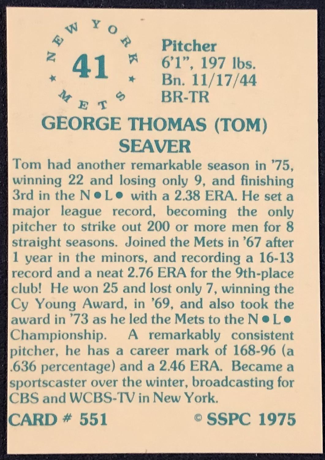 Lot 920 1975 SSPC BASEBALL TOM SEAVER (HOF)