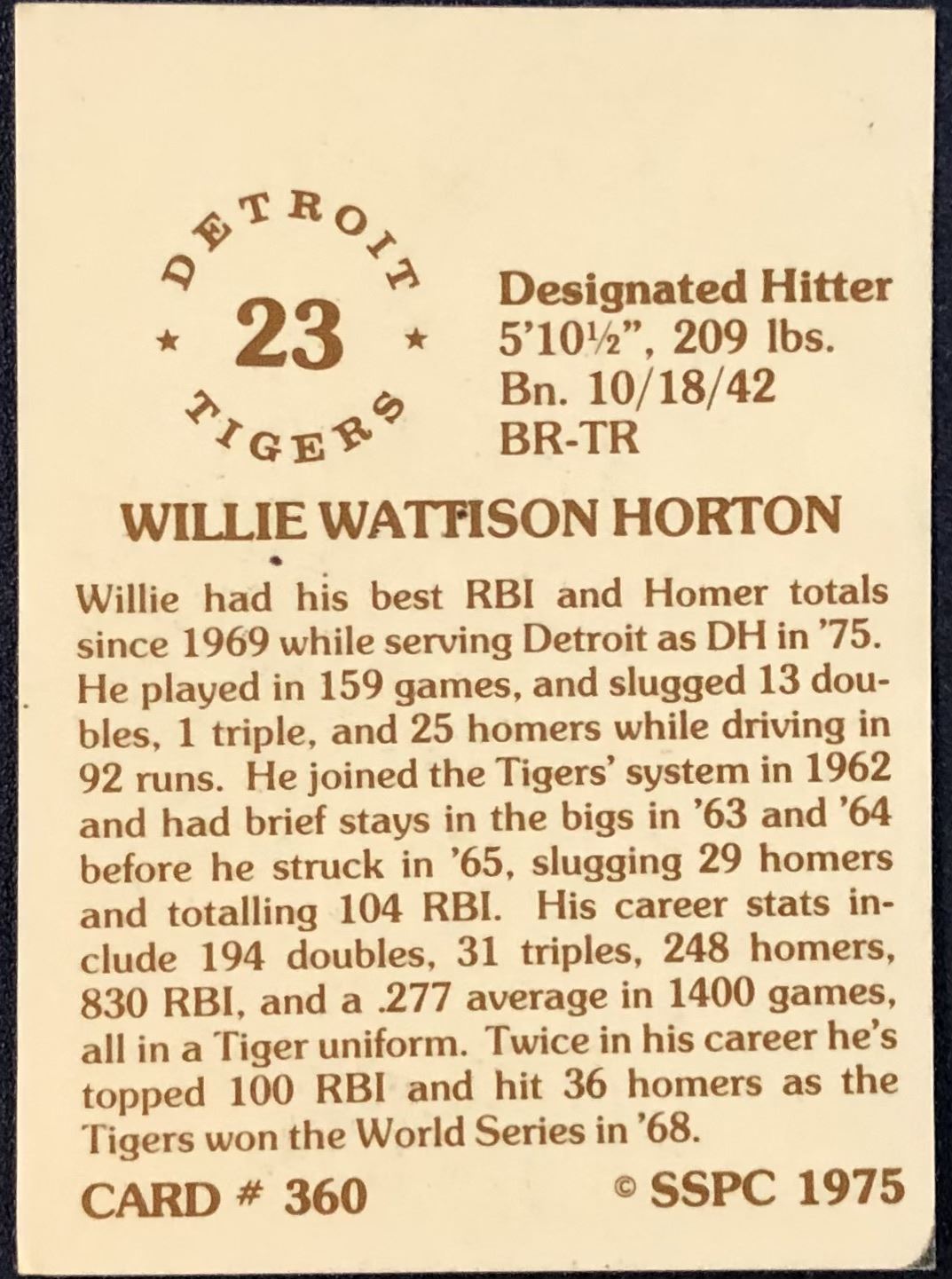 Lot 922 1975 SSPC BASEBALL WILLIE HORTON
