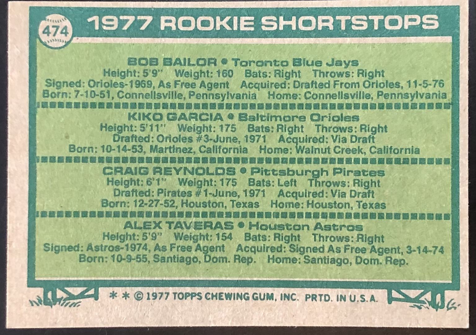 Lot 928 1977 TOPPS BOB BAILOR ROOKIE CARD