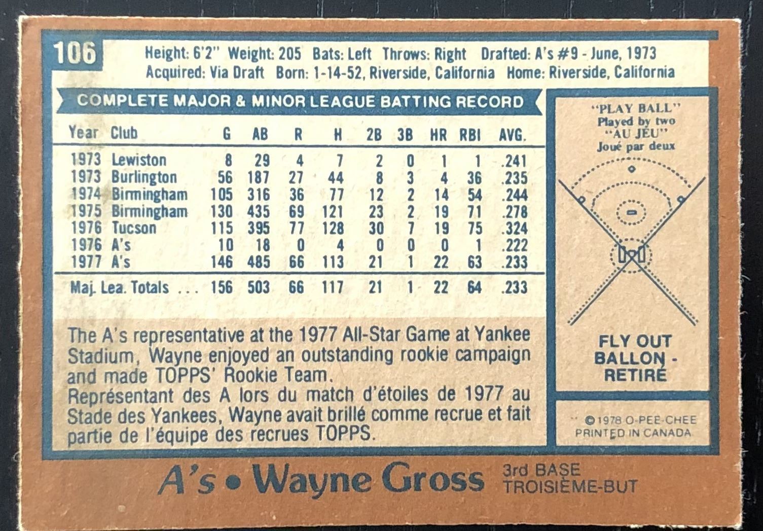 Lot 930 1978 O-PEE-CHEE WAYNE GROSS ROOKIE CARD