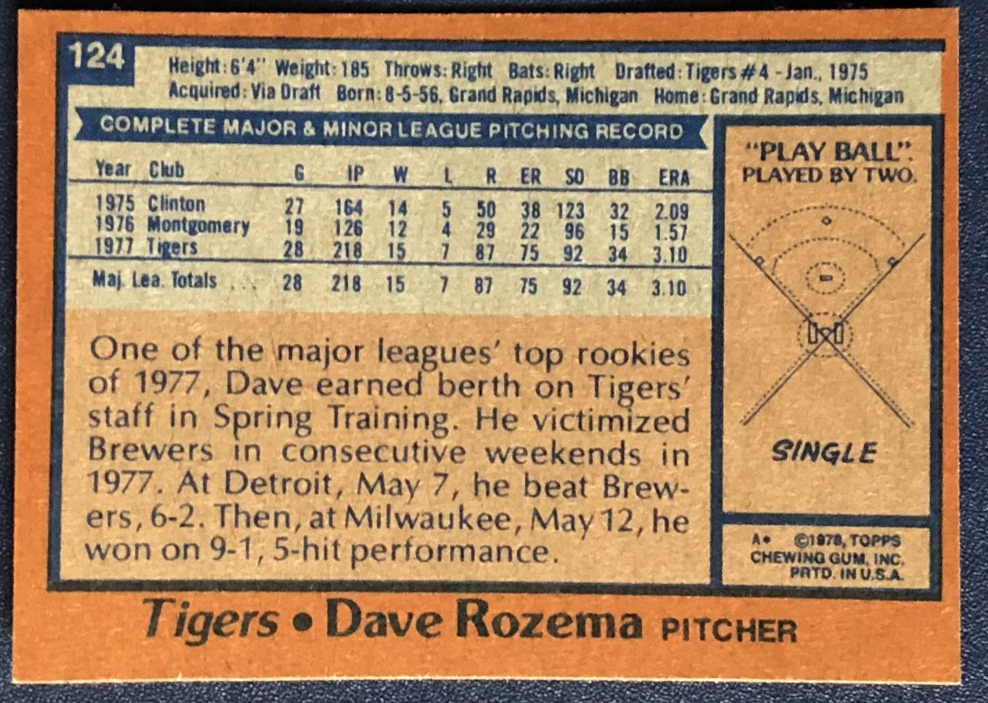 Lot 931 1978 TOPPS DAVE ROZEMA ROOKIE CARD