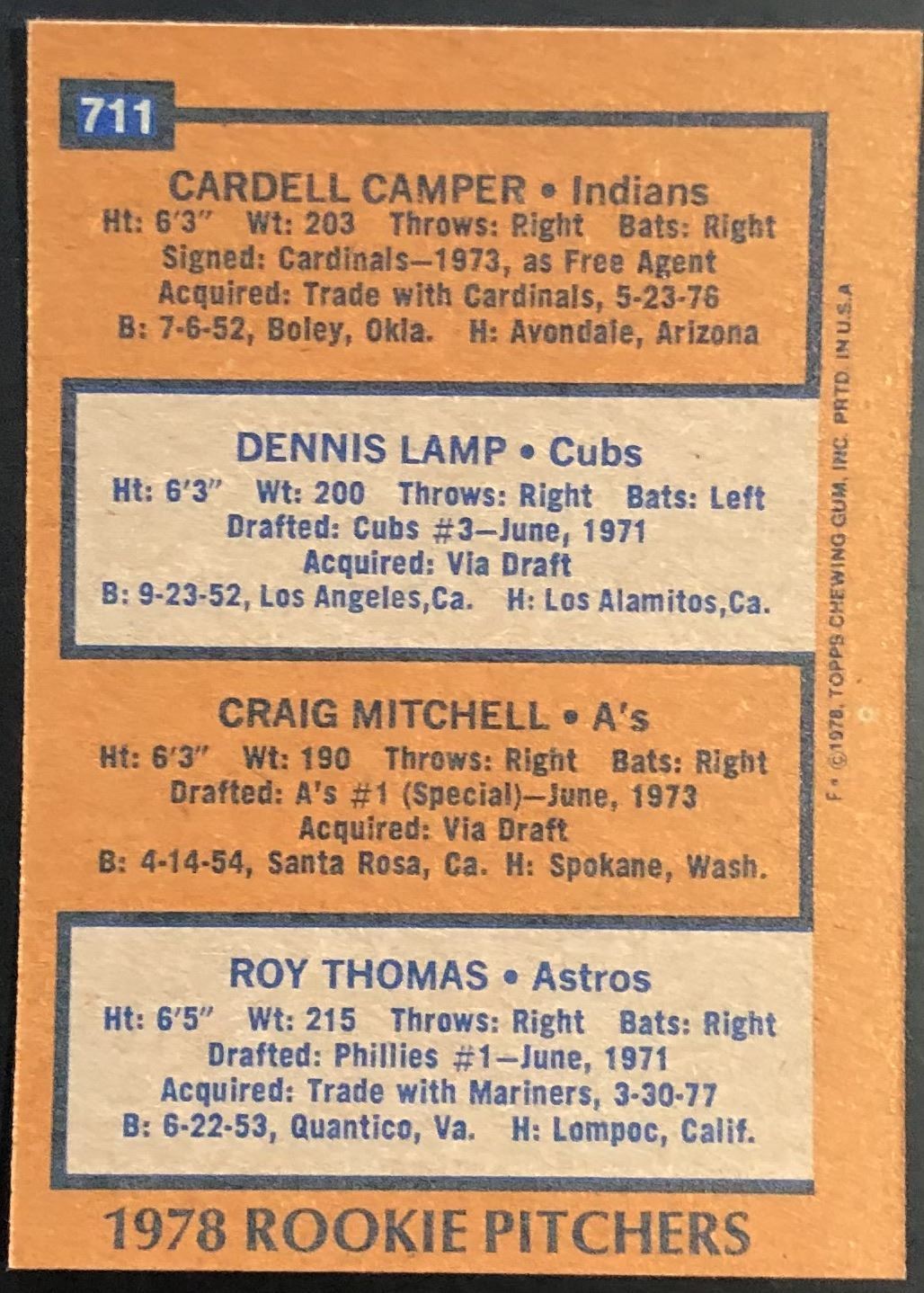 Card #711 MLB, baseball, vintage, rookie