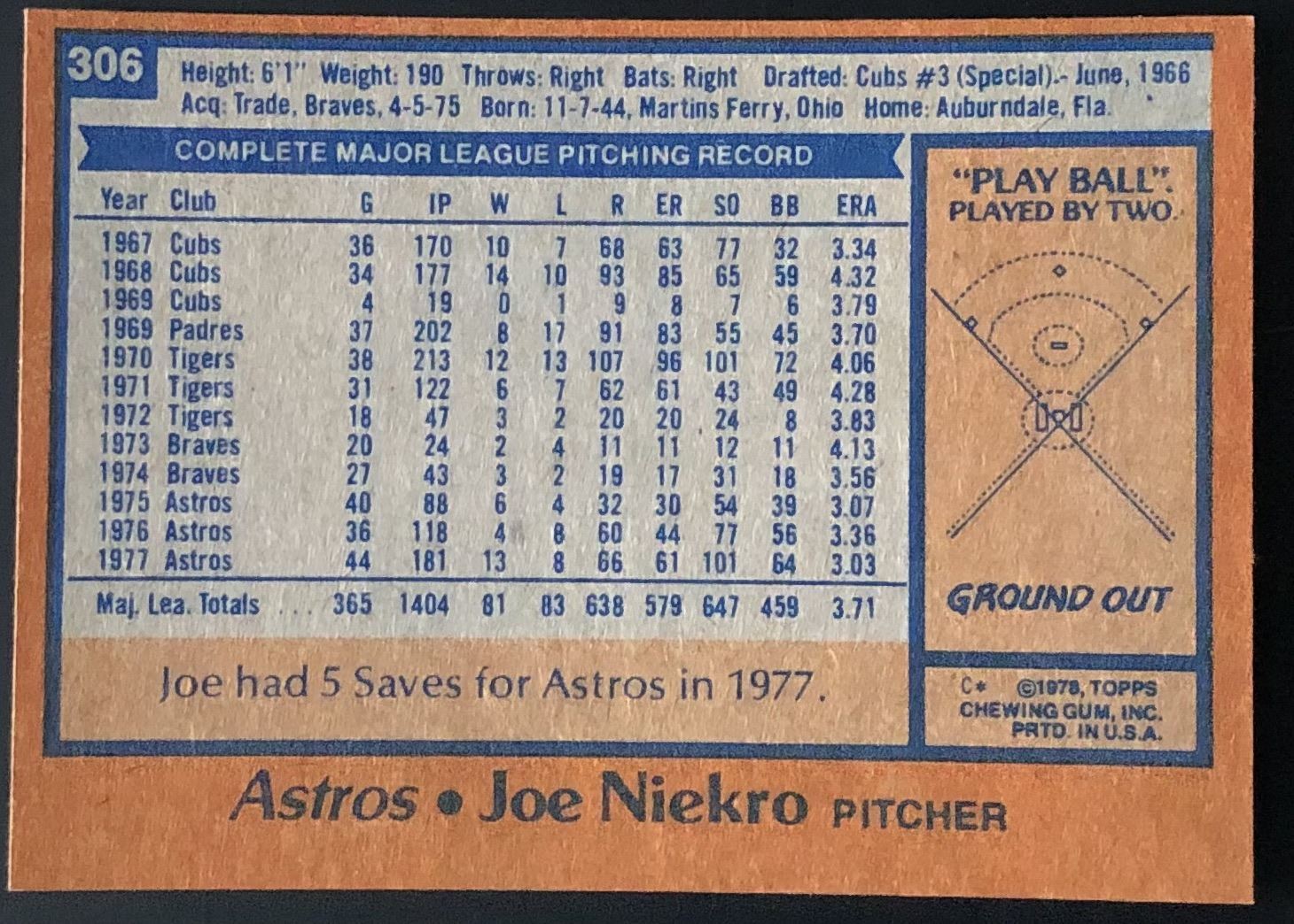 Lot 933 1978 TOPPS JOE NIEKRO (HOF)