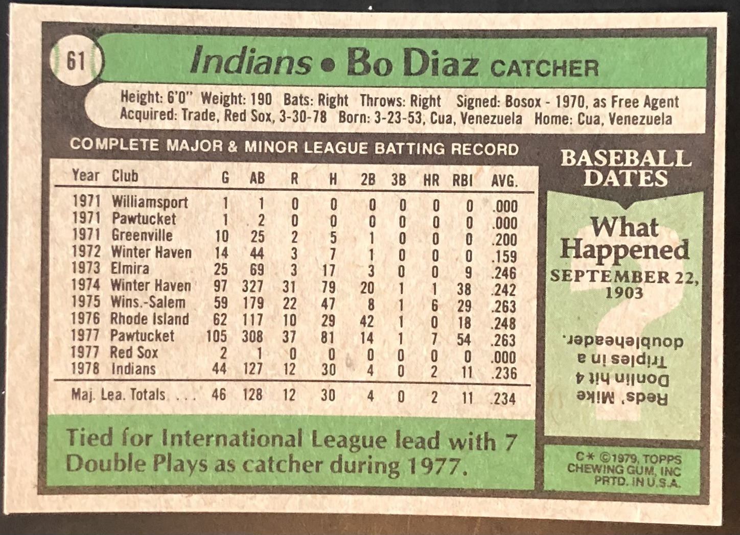 Lot 936 1979 TOPPS BO DIAZ ROOKIE CARD