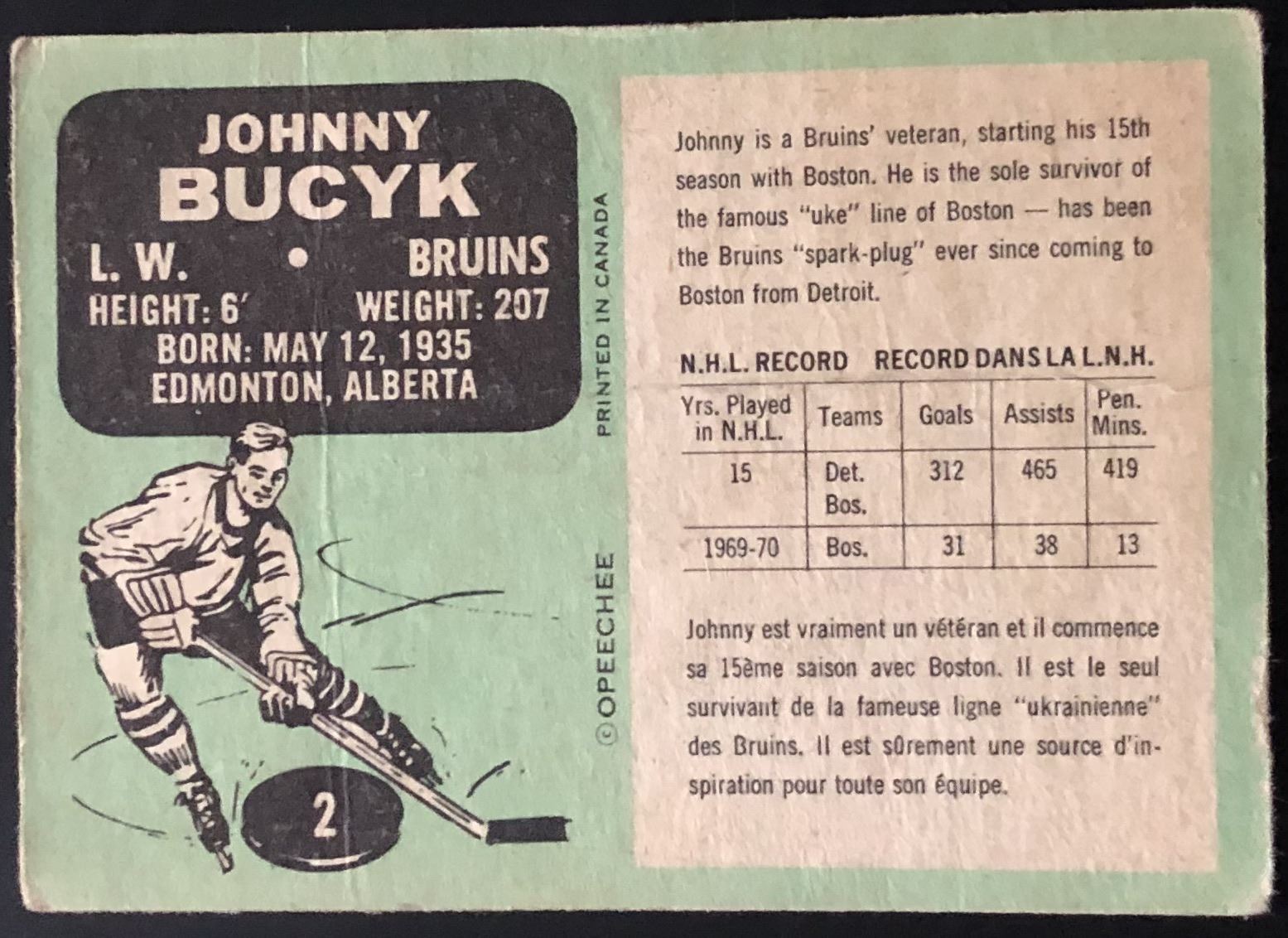 Lot 942 1970-71 O-PEE-CHEE JOHNNY BUCYK (HOF)