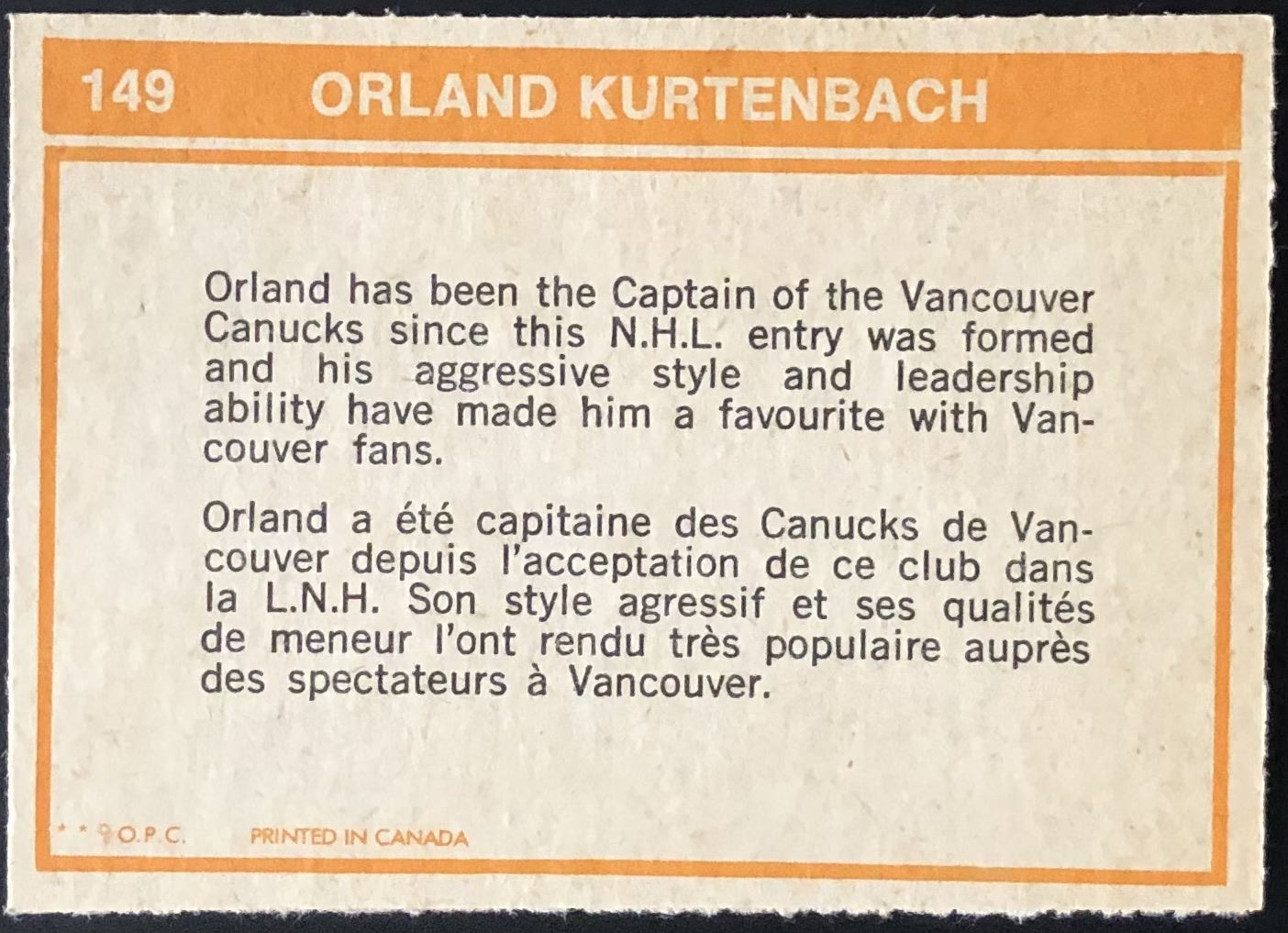 Card #149 NHL, hockey, vintage, OPC, hall of fame