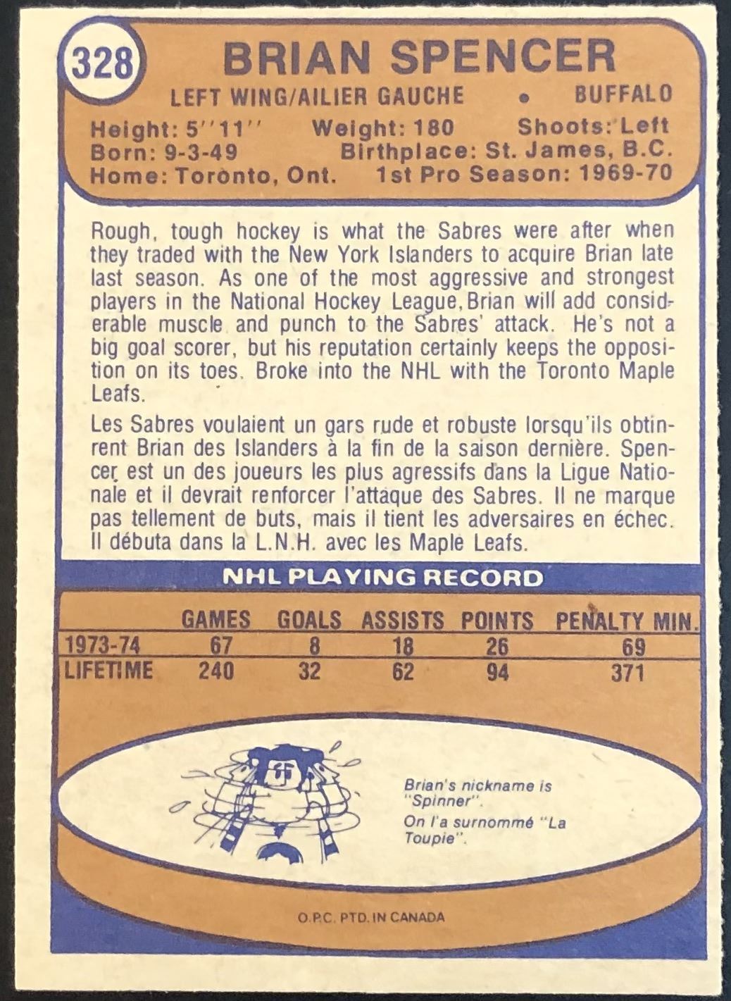 Lot 951 1974-75 O-PEE-CHEE BRIAN SPENCER
