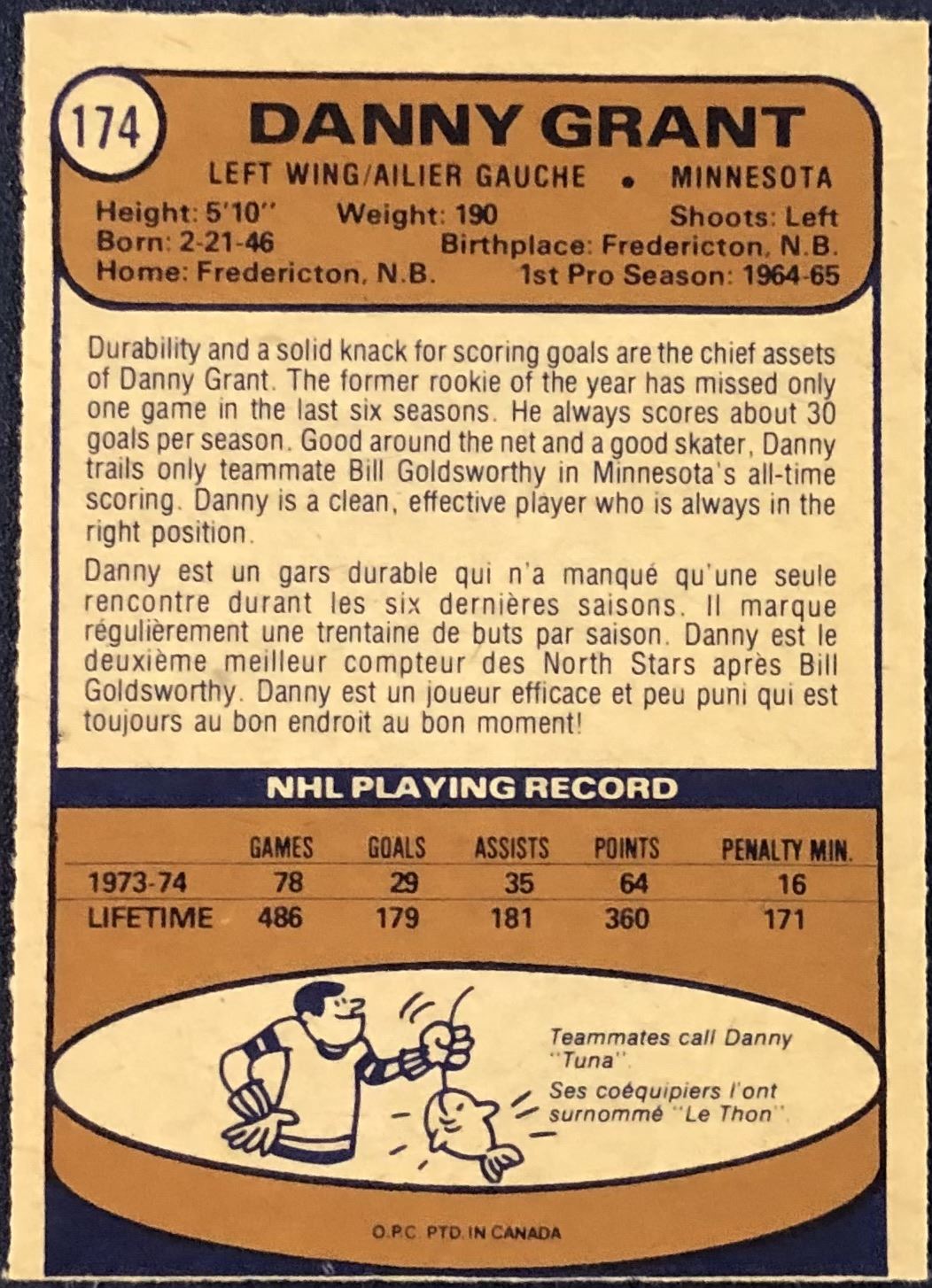 Lot 952 1974-75 O-PEE-CHEE DANNY GRANT